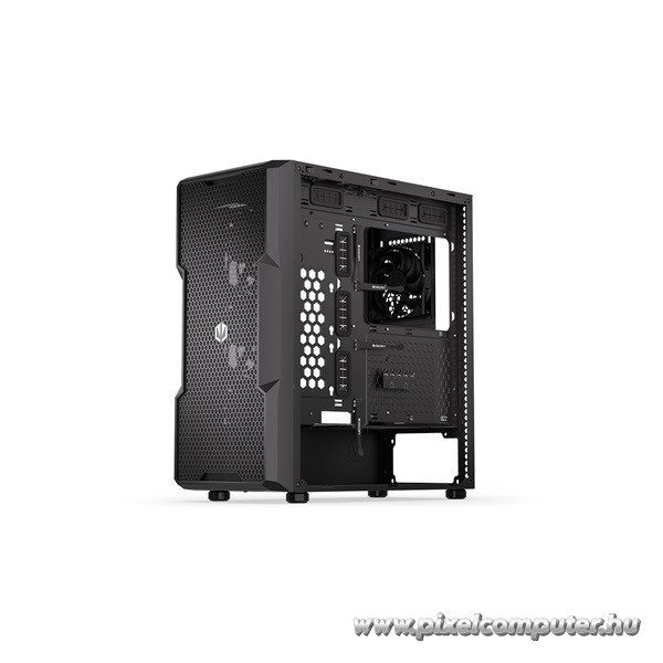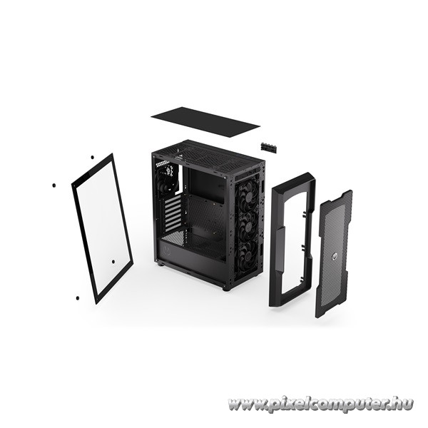 A Pixelcomputer kínálatában elérhető Regnum 400 Air a hűtési teljesítményéről ismert: akár 8 ventilátorral is felszerelhető, de már a gyári négy darab 12 cm-es egység is kiváló légáramlást biztosít. A fémháló előlapi borítás segíti a légbeáramlást, az edzett üveg oldallap pedig lehetőséget ad arra, hogy a belső világítás és komponensek domináljanak. A gyártó precíz anyaghasználata – ABS, SPCC, üveg – garantálja a stabilitást és a stílust.