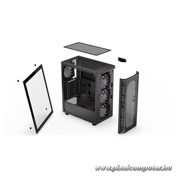 A ventilátorok csendes működése és a kiváló légáramlás révén a belső komponensek hűtése mindig kontrollált, még akkor is, ha nagy teljesítményű grafikus kártyát vagy toronyhűtőt használsz. A ARGB világítás nem csak dizájn, hanem identitás is – saját ízlésed szerint állíthatod, hogy mindig passzoljon a setupodhoz. A hálós előlap és a mágneses porszűrők pedig könnyű karbantartást tesznek lehetővé.