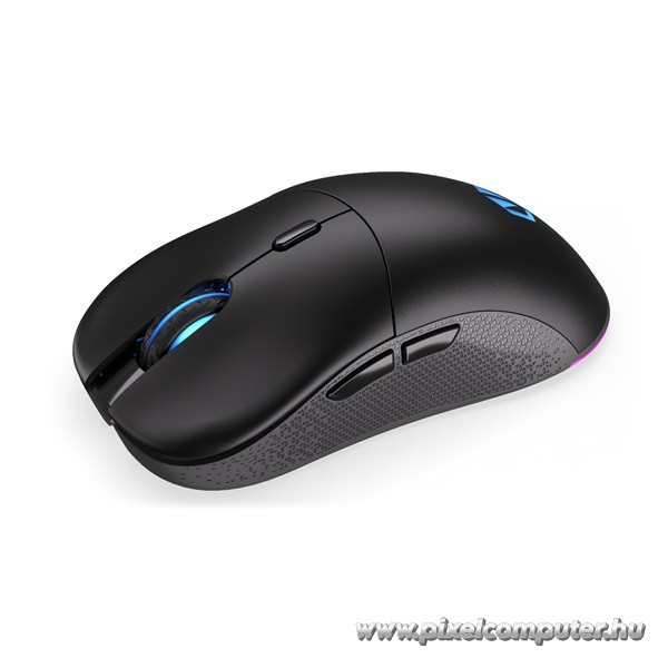 A tapintás, a fény, a mozdulat – minden érzékszervi részlet összehangolt. A fekete felület prémium érzetet kelt, a gumírozott oldalsó borítás biztonságos fogást nyújt, és a könnyed mozgás valóban élménnyé teszi a használatot. A PixArt érzékelő finom, mégis magabiztos vezérlést biztosít, amelyet azonnal megérzel. Minden kattintás határozott, minden mozdulat kontrollált – ez az, amitől a játék nem csak gyorsabb, hanem pontosabb is lesz.