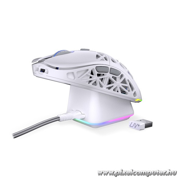 A mellékelt töltődokkoló nemcsak hasznos kiegészítő – az asztalod fókuszpontja is lehet. Mindig tudod, hogy hol az egér, és soha nem kell aggódnod az akkumulátor miatt. A Paracord típusú kábel ráadásul olyan könnyű és rugalmas, hogy kábeles üzemmódban is szinte súlytalan érzetet nyújt. Ez különösen fontos azoknak, akik komolyabb gaming sessionökön vesznek részt, és nem szeretnének kompromisszumokat a mozgásban.