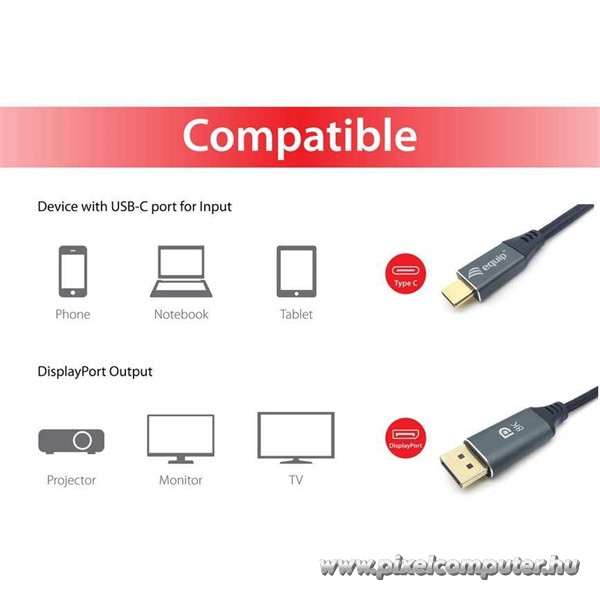Szerezd be a Equip 133422 USB-C → DisplayPort 8K kábelt a Pixelcomputer webáruházában, és élvezd a hibátlan képátvitelt, a prémium anyagminőséget és a professzionális szintű megbízhatóságot minden csatlakozásnál!