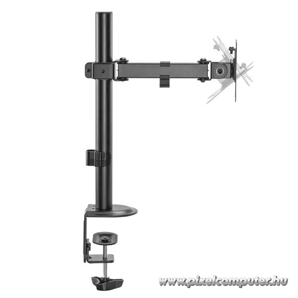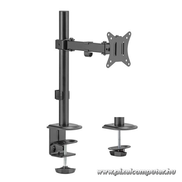 A konzol alapját a masszív acél konstrukció adja, amely stabil rögzítést biztosít egyetlen monitor számára. A 9 kg teherbírás elegendő tartalékot kínál a 17"-32" méretű kijelzők biztonságos megtartásához. A szerkezet kialakítása a hosszú távú stabilitásra fókuszál. A VESA 75x75 és 100x100 kompatibilitás széles körű illeszkedést tesz lehetővé. A rögzítési pontok precíz kialakítása egyenletes súlyelosztást biztosít. A talapzat stabil alapot nyújt az asztalon. A mechanika kialakítása támogatja a kiegyensúlyozott mozgást. A döntési rendszer pontosan reagál a beállításokra. A forgatható kialakítás lehetővé teszi az oldalirányú igazítást. A magasságállítás támogatja az ergonomikus munkapozíció kialakítását. A szerkezet 2,65 kg-os tömege stabilitást ad. A fekete kivitel diszkrét és modern megjelenést biztosít. A kábelrendező rendszer segít a vezetékek esztétikus elvezetésében. A konstrukció intenzív használatra is alkalmas. A rögzítés biztonságos és stabil. A kialakítás kompakt, mégis erős. A telepítés átlátható és logikus folyamat. A szerkezet tartós anyagból készült. A monitor stabilan a helyén marad. Ez az a műszaki alap, amely megbízható munkakörnyezetet biztosít.