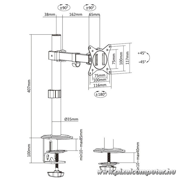 A hatékonyság nem véletlen, hiszen a +45° ~ -45° dönthetőség és ±90° forgathatóság széles beállítási lehetőséget kínál. A monitor könnyedén a kívánt szögbe állítható. A döntési tartomány segíti a tükröződések minimalizálását. A forgathatóság lehetővé teszi a kijelző pontos pozicionálását. A magasságállítás támogatja a megfelelő szemmagasság beállítását. Az ergonomikus elrendezés csökkentheti a nyaki és vállterhelést. A rendszer alkalmazkodik a különböző munkapozíciókhoz. A mechanika stabilan tartja a beállított pozíciót. A mozgás egyenletes és kontrollált. A kialakítás támogatja a hosszabb ideig tartó munkavégzést. A monitor pozíciója gyorsan módosítható. A szerkezet nem mozdul el a használat során. A beállítási lehetőségek széles skálája személyre szabható elrendezést tesz lehetővé. A konstrukció támogatja az ergonomikus testtartást. A kijelző pontosan a felhasználó igényeihez igazítható. A rendszer professzionális munkakörnyezetbe illeszkedik. A stabil kialakítás biztonságérzetet ad. A használat során a beállított pozíció megmarad. A mechanika tartós működést biztosít. Ez az a rugalmasság, amely valódi kényelmet jelent.