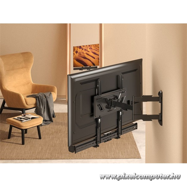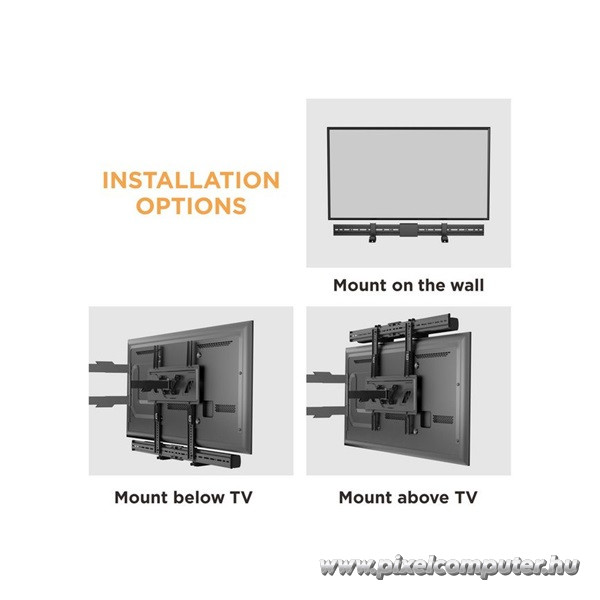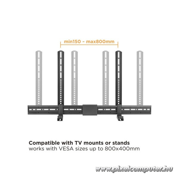 Amikor a televízió alá vagy fölé szeretnéd rögzíteni a hangprojektort, a 86-155 mm állítható szélesség valódi rugalmasságot biztosít. A konzol alkalmazkodik különböző soundbar modellekhez. A stabil rögzítés segít a rendezett megjelenés kialakításában. A falra szerelt elhelyezés letisztult összképet eredményez. A hangrendszer vizuálisan egységes marad a televízióval. A masszív szerkezet támogatja a hosszú távú használatot. A telepítés egyszerű és átlátható. A rögzítési pontok pontosan illeszkednek. A konzol stabil tartást biztosít. A rendszer nem foglal el felesleges helyet. A falhoz közeli elhelyezés modern hatást kelt. A kialakítás professzionális megjelenést biztosít. A szerkezet nem zavarja a tér harmóniáját. A hangprojektor biztonságosan a helyén marad. A stabil rögzítés csökkenti az elmozdulás esélyét. A konstrukció hosszú távú használatra készült. A telepítés után a tér rendezettebbé válik. A fekete kivitel diszkrét és elegáns. A kialakítás funkcionális és esztétikus. Így válik a hangrendszer integrált részévé a nappalinak.