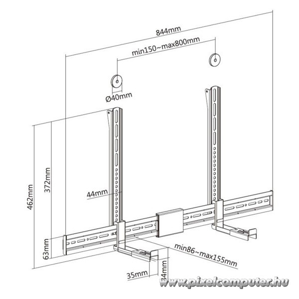 A konzol szerkezeti alapját a masszív acél váz biztosítja, amely stabil rögzítést kínál akár 15 kg tömegű soundbar számára is. Az acél és műanyag kombinációja kiegyensúlyozott tartósságot eredményez. A rögzítési pontok precíz kialakítása egyenletes súlyelosztást biztosít. A konstrukció célja a biztonságos és hosszú távú használat. A 86-155 mm közötti állítható tartomány lehetővé teszi különböző szélességű hangprojektorok rögzítését. A kialakítás univerzális kompatibilitást kínál. A VESA támogatás akár 800x400 méretig biztosít illeszkedést. A falra szerelés stabil alapot ad a rendszernek. A szerkezet 2,5 kg-os tömege masszív érzetet kelt. A fekete kivitel modern és diszkrét. A rögzítés során a konzol stabilan illeszkedik a falhoz. A konstrukció csökkenti a nem kívánt mozgást. A stabil kialakítás biztonságérzetet ad. A telepítés átlátható és logikus folyamat. A szerkezet intenzív használatra is alkalmas. A rögzítés biztonságos és megbízható. A konzol támogatja a tiszta hangzás megőrzését. A felépítés a hosszú élettartamra készült. A rendszer stabil marad a használat során. Ez az a műszaki alap, amelyre nyugodtan építheted hangrendszeredet.