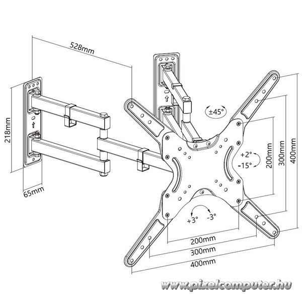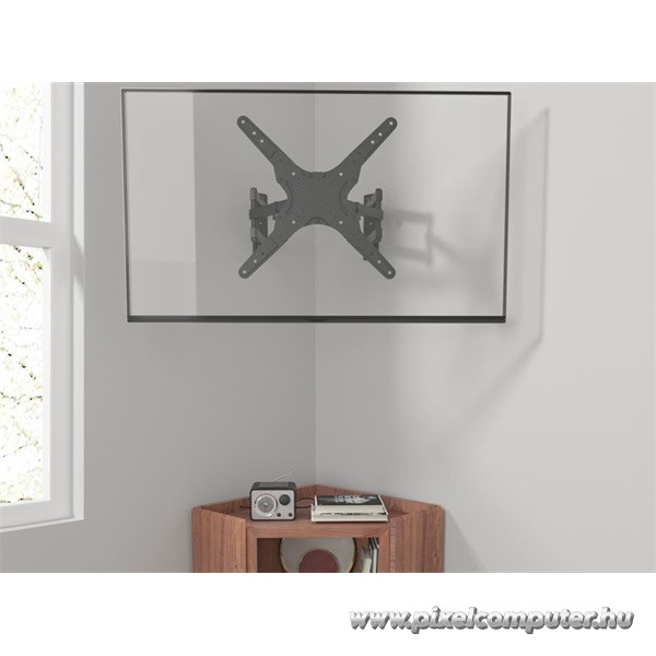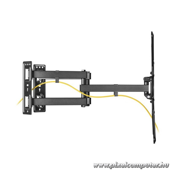 A 45 kg teherbírás és a VESA-kompatibilis szerkezet biztosítja, hogy a legtöbb modern televízióval kompatibilis legyen. A dönthető és forgatható kialakítás lehetővé teszi, hogy a képernyő mindig a legjobb szögben álljon – így elkerülheted a tükröződést, és tökéletes képet kapsz minden helyzetben. Az állítható kar 60–400 mm távolságra engedi a falról a TV-t, így a konzol a rugalmasság és a stabilitás egyensúlyát kínálja. A Pixelcomputer szakértői különösen ajánlják kisebb nappalikba, hálószobákba és sarokba rendezett terekbe.