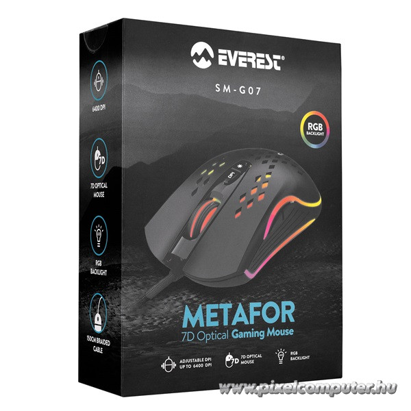 Szerezd be most az Everest SM-G07 METAFOR gamer egeret a Pixelcomputernél, és tapasztald meg a győzelemhez szükséges pontosságot és stílust minden játékban!