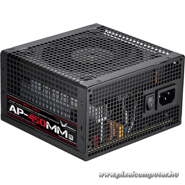 A Formula AP-450MM 450W tápegység minden elvárást felülmúl, ha stabil, halk és megbízható energiaellátásra van szükség. Az aktív PFC technológia, a japán kondenzátorok, a 80 PLUS hatékonyság és a hidraulikus ventilátor együttese hosszú távú stabilitást és biztonságot garantál minden számítógép számára.