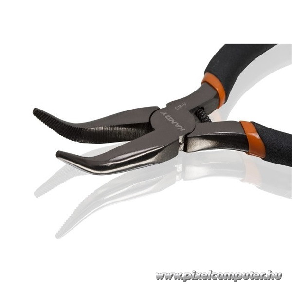 A Handy Laposfogó – 10313 technikai megoldásai kimagaslóak. A króm-vanádium acél nem véletlenül az egyik legkedveltebb anyag a professzionális szerszámok gyártásában: ellenáll a deformációnak, kopásnak és korróziónak, így éveken át megőrzi pontosságát. A 45°-os hajlított fej révén könnyedén elérhetők a nehezen hozzáférhető területek, legyen szó szűk elektronikai alkatrészekről vagy apró szerelési pontokról. A gumírozott, ergonomikus nyél csökkenti a kéz fáradását és biztonságos fogást ad még hosszabb munkavégzés során is. Ez az eszköz egyértelműen a precíz munkavégzéshez tervezett prémium kategóriás fogó.