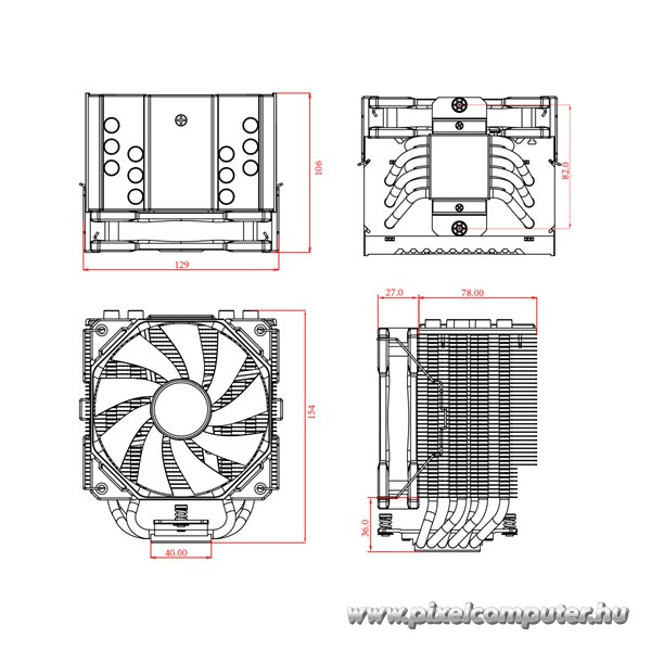 A technikai kiválóság minden részletében megmutatkozik. A 6 darab réz hőcső és a nagy felületű alumínium lamellák gyors hőleadást biztosítanak, míg a 120 mm-es ventilátor PWM vezérléssel intelligensen szabályozza a fordulatszámot a terhelés függvényében. A hidraulikus csapágy nemcsak halk, hanem hosszú élettartamú működést garantál. A 250 W TDP hűtési kapacitás még a legerősebb processzorokat is hűvösen tartja. A Pixelcomputer szakértői szerint ez a modell a megbízhatóság, teljesítmény és dizájn tökéletes egyensúlya, amit minden igényes PC-építő értékelni fog.