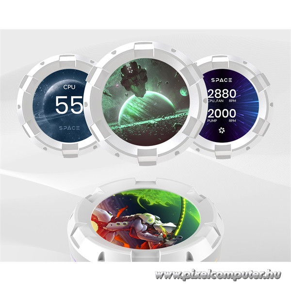 A Space SL240 WHITE azoknak készült, akik a prémium kategóriában keresik a kompromisszummentes teljesítményt. Gamereknek, kreatív szakembereknek és tuningrajongóknak, akik tudják, hogy a hőmérséklet a teljesítmény kulcsa. A 2.1 hüvelykes LCD kijelző nemcsak esztétikai elem, hanem funkcionális is – valós idejű hőmérséklet-, fordulatszám- és rendszeradatokat jelenít meg. A Pixelcomputer kínálatában elérhető fehér változat elegáns, modern megjelenésével bármely gépház dísze lesz.