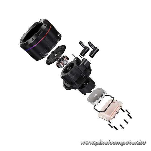 A hűtés szíve a kerámia csapágyas szivattyú, amely halk, mégis nagy hatékonyságú működést garantál. A 25 dB(A) zajszint mellett a működése szinte észrevehetetlen, miközben a 78 CFM légáram és a 2.68 mmH₂O statikus nyomás biztosítja a gyors hőelvezetést. A három ventilátor tökéletesen szinkronban dolgozik, a PWM vezérlésnek köszönhetően pedig mindig az adott hőmérséklethez igazítják a fordulatszámot.