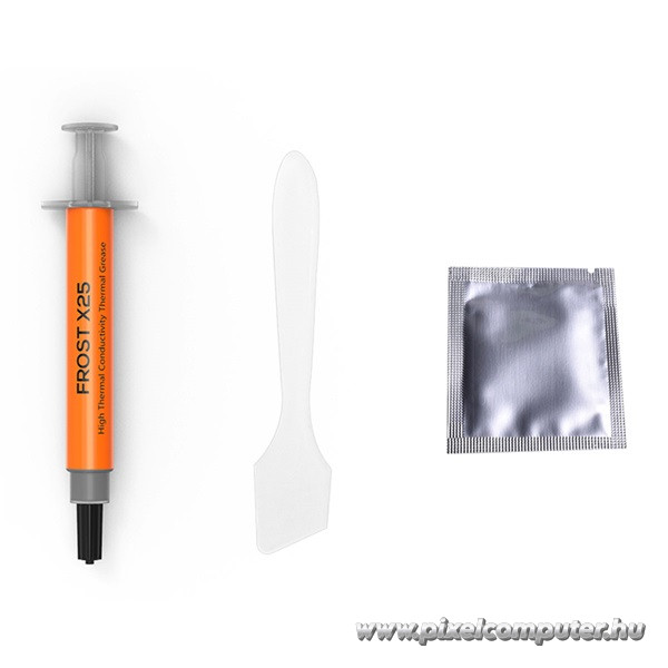 A FROST X25 2G hőpaszta azoknak készült, akik szeretnék maximalizálni számítógépük hűtési hatékonyságát. Ideális választás játékosok, tuningolók és rendszerépítők számára, akik számára minden fok számít. A magas hővezetési képesség garantálja, hogy a processzor és a hűtő közötti hőátadás gyors és hatékony legyen. A Pixelcomputer vásárlói kiemelik, hogy ez a paszta stabil teljesítményt nyújt, még extrém igénybevétel mellett is.