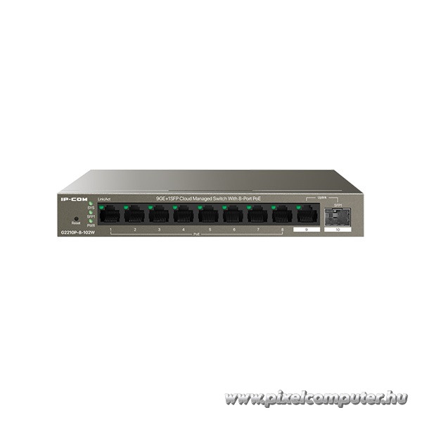 IP-COM Switch PoE - G2210P-8-102W (9x1Gbps, 8 PoE+ port, 92W, 1x SFP, Ventilátormentes)