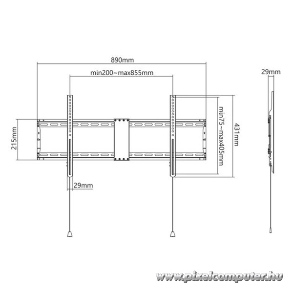 A masszív, 2 mm vastag megerősített acél konstrukció biztos alapot ad még a legnagyobb méretű kijelzők számára is. A precíz gyártás és a porszórt bevonat hosszú távon is stabil tartást garantál. A fix kialakítás minimalizálja a mozgó alkatrészek számát, így a szerkezet egyszerű, mégis rendkívül stabil. A 43"–100" mérettartomány lefedi a modern televíziók döntő többségét. A VESA 200x200-tól egészen 800x400 szabványig kompatibilis rendszer rugalmas telepítést tesz lehetővé. A 70 kg teherbírás komoly biztonságot jelent. A szerelési pontok megerősítettek. A rögzítés feszes és pontos. A falhoz simuló kialakítás csökkenti a vizuális terhelést. A készülék szinte lebeg a falon. Ez a megoldás hosszú távra szól.