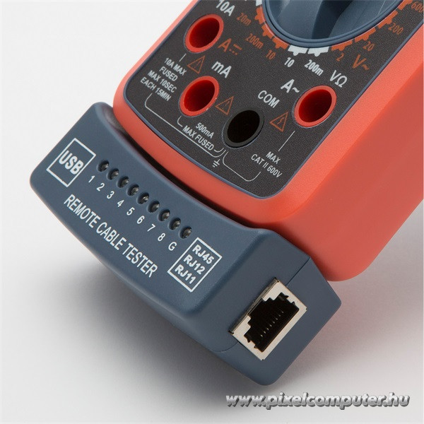 A levehető kontroll egység lehetővé teszi a távoli mérés kényelmét – ideális nagyobb kábelek, szerverek vagy fali csatlakozások ellenőrzésére. A háttérvilágított LCD kijelző biztosítja, hogy a mérési adatok minden körülmények között jól láthatók legyenek, még gyenge fényviszonyok között is. A kompakt méret és a strapabíró ház garantálja, hogy a műszer hosszú távon is megbízható társ legyen mind a műhelyben, mind terepen.