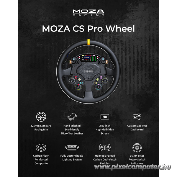A megfelelő kormánykerék meghatározza a szimulátoros élményt. A MOZA Racing CS Pro kormánykerék 325 mm-es felnivel és nagyfelbontású kijelzővel kínál precíz vezérlést. A karbonerősített konstrukció hosszú távú stabilitást biztosít. A programozható világítás és beviteli rendszer testreszabható élményt nyújt. A Pixelcomputer kínálatában megbízható forrásból érhető el.