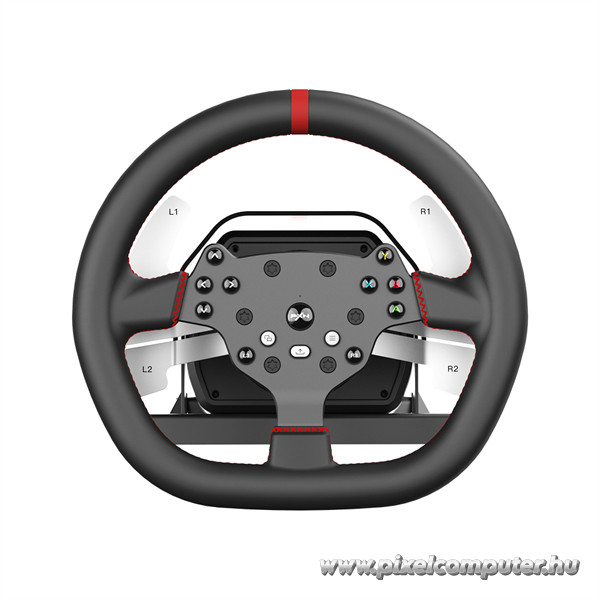 A bőr markolatú kormánykerék kényelmes és tartós, míg az alumíniumötvözetből készült ház biztosítja a stabilitást még intenzív versenyhelyzetekben is. Az ergonomikus kialakítás hosszú játékidő után is kényelmes használatot garantál, a kétmotoros meghajtás pedig rendkívül részletes, valósághű visszajelzést nyújt a pálya minden rezdüléséről.