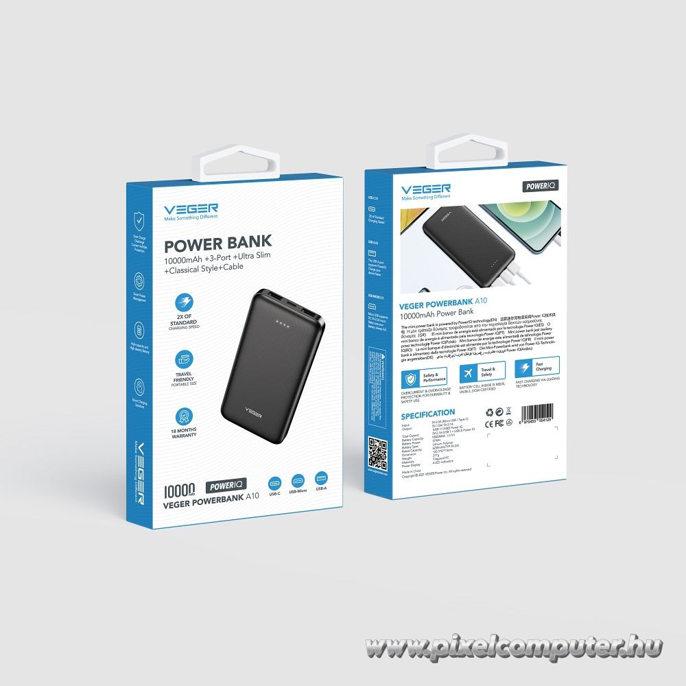 Ez az a megoldás, amely biztosítja, hogy mindig legyen nálad tartalék energia. A VEGER A10 10 000 mAh kapacitásával megbízható alapot ad. A többportos kialakítás rugalmasságot kínál. A LED visszajelzők segítenek a tervezésben. A kompakt forma kényelmes hordozhatóságot biztosít. A stabil 5 V / 2 A kimenet egyenletes töltést ad. A visszajelzések alapján a használat egyszerű és praktikus. A modell ideális választás utazáshoz, napi ingázáshoz vagy hosszabb programokhoz. A működés megbízható. A kialakítás letisztult. A teljesítmény stabil. A Pixelcomputer kínálatában ez a power bank a mobil energia egyik legpraktikusabb eszköze. Válaszd a VEGER A10-et, és maradj mindig feltöltve, bárhová is mész.