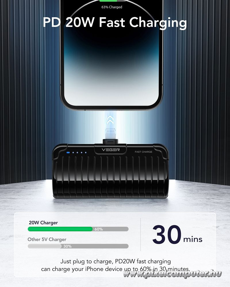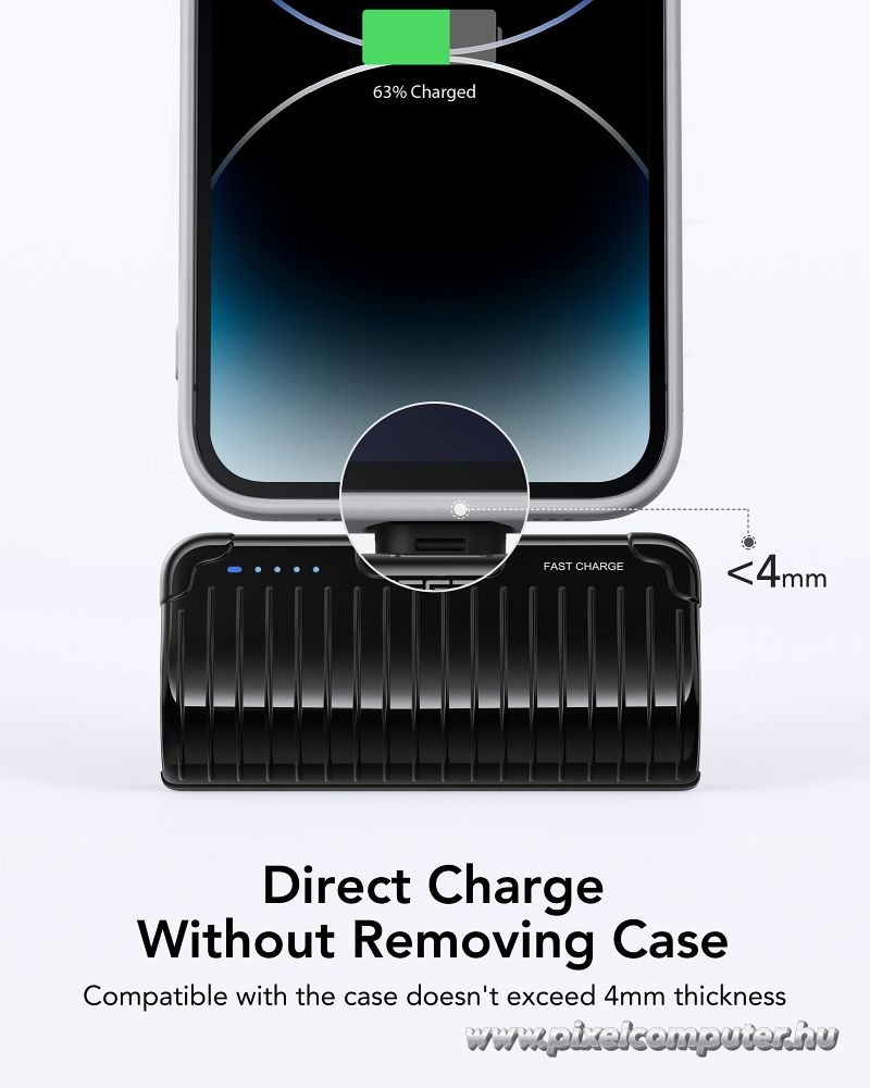 A beépített Lightning csatlakozó közvetlen és stabil kapcsolatot biztosít, így nincs szükség külön kábelre. Ez a megoldás gyorsabb csatlakoztatást és letisztult használatot tesz lehetővé. A 20W teljesítmény támogatja a modern gyorstöltési technológiákat, így az Apple készüléked rövid idő alatt jelentős töltöttséget érhet el. A PD3.0 és QC3.0 kompatibilitás biztosítja a hatékony energiaátvitelt.