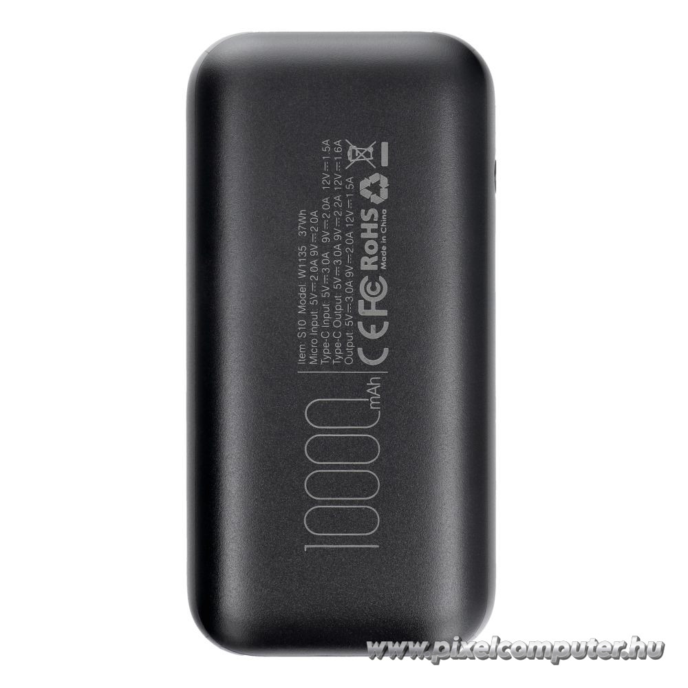 A 10000 mAh kapacitás ideális választás napi használatra. Megbízható tartalék energiát biztosít útközben, utazás során vagy intenzív munkanapokon. A 37 Wh energiatartalom kiegyensúlyozott teljesítményt nyújt. A kompakt méret ellenére stabil energiaellátást kínál több eszköz számára is.