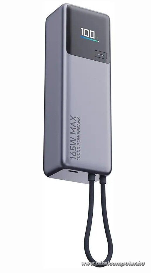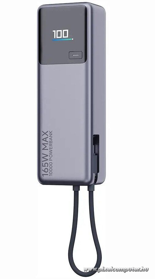 A 10000 mAh kapacitás elegendő energiát biztosít a mindennapi töltésekhez. A nagy, akár 165W teljesítmény lehetővé teszi, hogy egyszerre két eszközt is nagy sebességgel tölts – a beépített USB-C kábel akár 120W-ot, míg a port 45W-ot biztosít. Ez különösen hasznos kompatibilis laptopok esetén. A PD és QC gyorstöltési technológia optimalizálja az energiaátadást, így a készülékeid gyorsabban és hatékonyabban töltődnek. A 90W-os öntöltési képesség jelentősen csökkenti a várakozási időt. A színes LED kijelző segít pontosan követni az aktuális töltöttségi szintet és az aktív paramétereket. A beépített kábel kettős funkcióval rendelkezik: töltheted vele a power bankot és más eszközöket is.