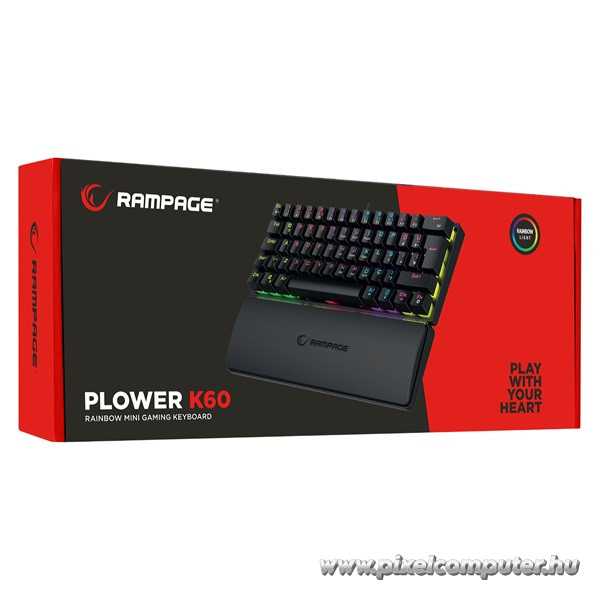 A kényelmes csuklótámasz segíti a hosszú távú használatot, csökkentve a csuklóra nehezedő terhelést. A kompakt méret tökéletesen illeszkedik minden asztalra, míg a strapabíró PVC kábel tartós használatot garantál. A Pixelcomputer vásárlói külön dicsérik a stabil kialakítást, a kényelmes gépelési érzetet és a precíz billentyűreakciókat, amelyek a Rampage márka egyik legjobb modelljévé teszik a K60-at.