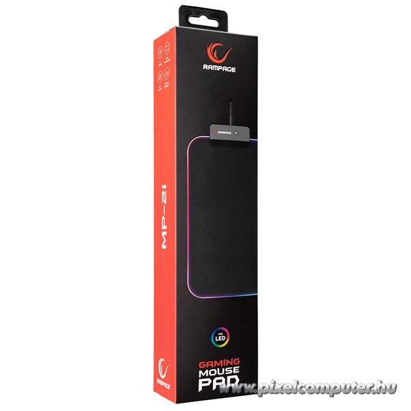 Rampage MP-21 – RGB LED Gamer Egérpad / 252 × 328 × 3 mm / Fekete