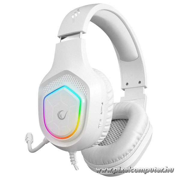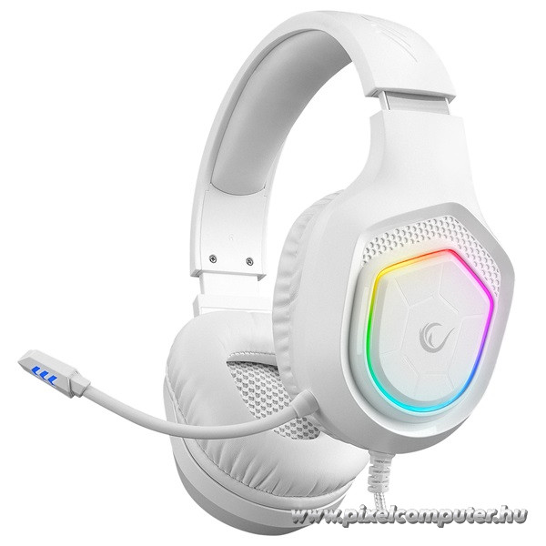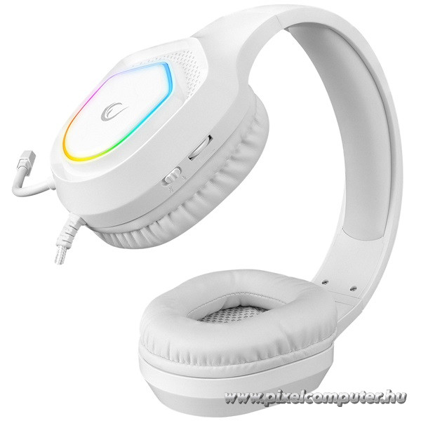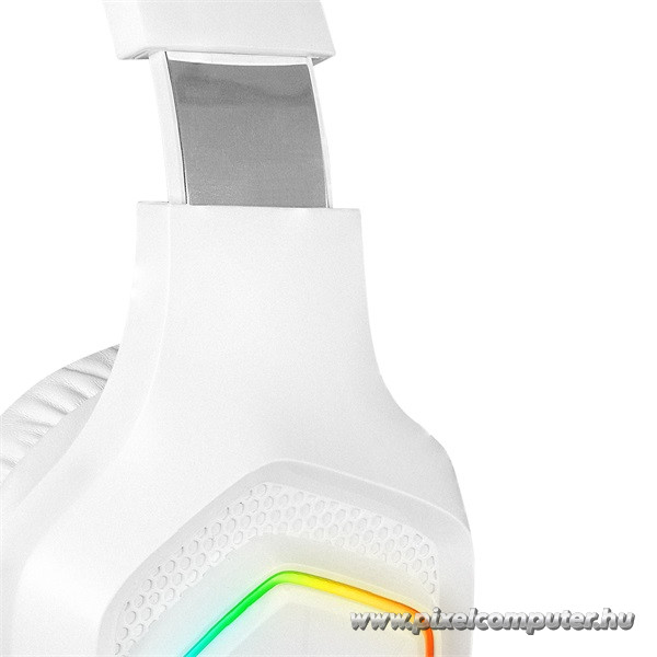 Az RGB világítás látványos vizuális elemet ad a konfigurációnak. A fehér burkolat modern és esztétikus megjelenést biztosít, amely különösen jól illeszkedik világos gamer setupokhoz. A nagy párnázott kialakítás kényelmes viseletet kínál hosszabb használat során is. A 200 cm-es kábel megfelelő mozgásteret biztosít. A kényelmes és stílusos kialakítás támogatja a hosszabb játékmeneteket.