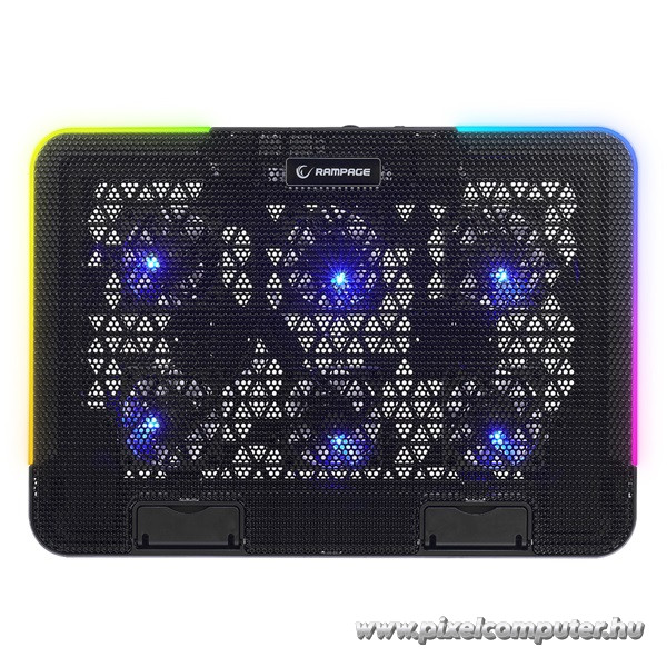 A Rampage SIXPOWER R9 notebook hűtőpad azoknak szól, akik szeretnék a laptopjuk teljesítményét biztonságosan és hosszan fenntartani. Ideális választás játékosoknak, tartalomkészítőknek, irodai dolgozóknak és diákoknak, akik sokat használják a gépüket. A 6 darab ventilátor erőteljes légáramlást biztosít, amely segít megelőzni a túlmelegedést, így a laptopod hosszabb ideig képes stabilan működni. A fémrácsos felület és a masszív konstrukció stabil alapot ad, így nem kell aggódnod a készüléked biztonsága miatt. Ez a hűtőpad kényelmes, hatékony és látványos kiegészítő minden notebookhoz.