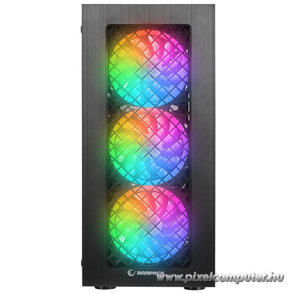 A Rampage PLAID V1 azoknak való, akik szeretnének kompromisszumok nélkül teljesítményt és látványt a rendszerükben. Az edzett üveg oldallap betekintést enged a gép belsejébe, így a hardvered és a világításod is érvényesülhet. A tágas belső tér és a 335 mm-es GPU támogatás lehetővé teszi a legerősebb kártyák beépítését is. Az USB 3.0 és USB 2.0 portok kényelmes csatlakoztatást biztosítanak, a 2,5” és 3,5” meghajtóhelyek pedig bőséges bővítési lehetőséget nyújtanak.