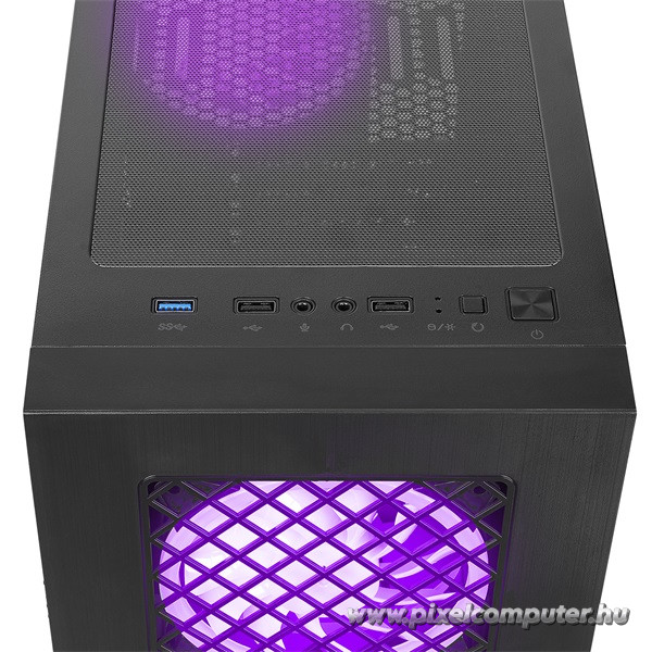 Az esztétikum mellett a funkcionalitás is kiemelkedő. A légáramlás optimalizált, a ventilátorok halkak, a kábelvezetés rendezett, így a rendszered hűvös marad még nagy terhelés mellett is. A fekete váz és a színes világítás kombinációja egyszerre modern és elegáns megjelenést biztosít. Minden részletében érződik a minőség és a tudatos tervezés.