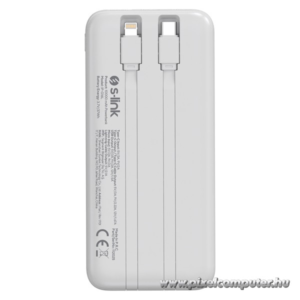 S-Link Powerbank - IP-G16L 10000mAh (3x Type-C, Lightning, 20W PD, led, fehér)