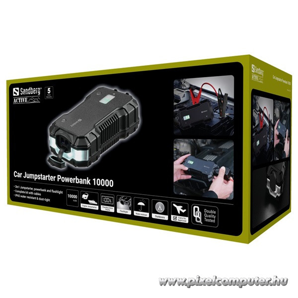 A Sandberg Car Jumpstarter Powerbank 10000 használata egyszerű, mégis sokoldalú: elég egyetlen eszköz, hogy gyorsan beindítsd a motort, feltöltsd a telefonod, vagy világíts a sötétben. A beépített LED-lámpa különösen hasznos éjszakai használatnál, az IP65 védettség pedig gondoskodik róla, hogy eső, por vagy sár se állhasson az utadba. Egy ilyen kiegészítő nem luxus – ez egy okos döntés, ami bármelyik csomagtartóba, táskába vagy kesztyűtartóba elfér.