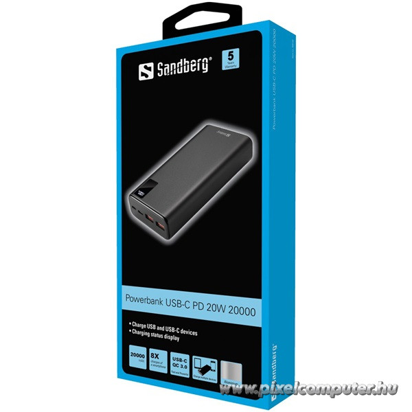 Válaszd a Sandberg Powerbank USB-C PD 20W 20000 mAh modellt a Pixelcomputer webáruházban, és élvezd a szabadságot, hogy bárhol, bármikor feltöltheted eszközeid – gyorsan, biztonságosan és stílusosan!