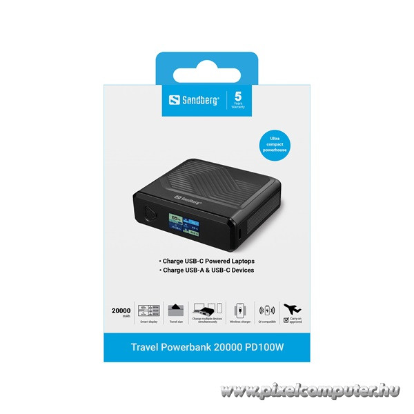 Válaszd a Sandberg Travel Powerbank 20000 PD100W modellt a Pixelcomputer kínálatából, és biztosíts magadnak erőteljes, hordozható energiát bárhol, bármikor.
