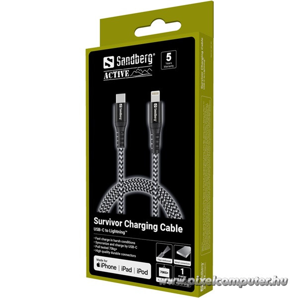 Szerezd be a Sandberg Survivor USB-C PD → Lightning 1M kábelt a Pixelcomputer webáruházból, és élvezd a villámgyors töltést, a tartós megbízhatóságot és a prémium minőséget – mert a túléléshez erő kell!