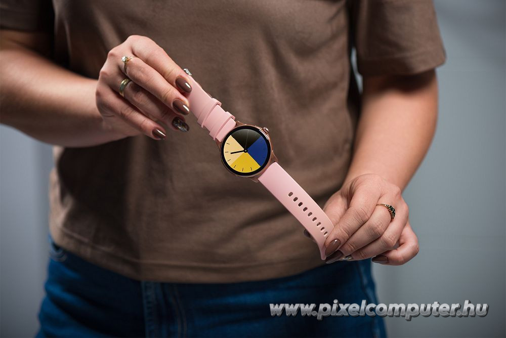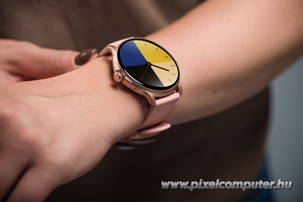 A nagy felbontású AMOLED kijelző 466 × 466 pixeles részletességet biztosít, amely tiszta, kontrasztos megjelenítést nyújt minden fényviszony mellett. A mély fekete árnyalatok és az élénk színek modern, prémium hatást keltenek. A teljes érintőképernyős vezérlés gyors és intuitív navigációt tesz lehetővé.