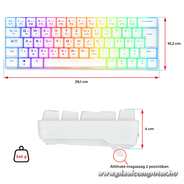 A RGB LED háttérvilágítás nemcsak látványos, hanem praktikus is, hiszen rossz fényviszonyok mellett is könnyedén használható a billentyűzet. A testreszabható színek és effektek lehetővé teszik, hogy saját stílusodra szabhasd a megjelenést, és mindig a megfelelő hangulatot teremthesd meg a játék során.