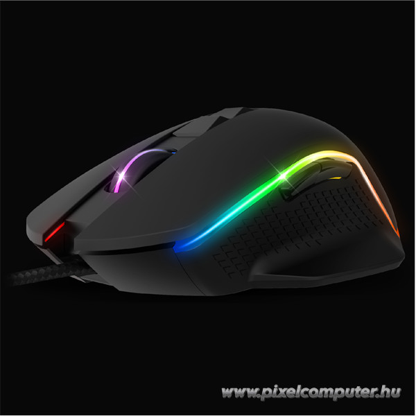 A látványos RGB világítás személyre szabható színekkel és effektekkel emeli a játékélményt, így az egér nemcsak teljesítményben, hanem megjelenésben is tökéletesen illeszkedik egy gamer setuphoz. Az erős vizuális hatás mellett a stabil és masszív kialakítás bizalmat sugall, amely minden játékos számára megnyugtató.