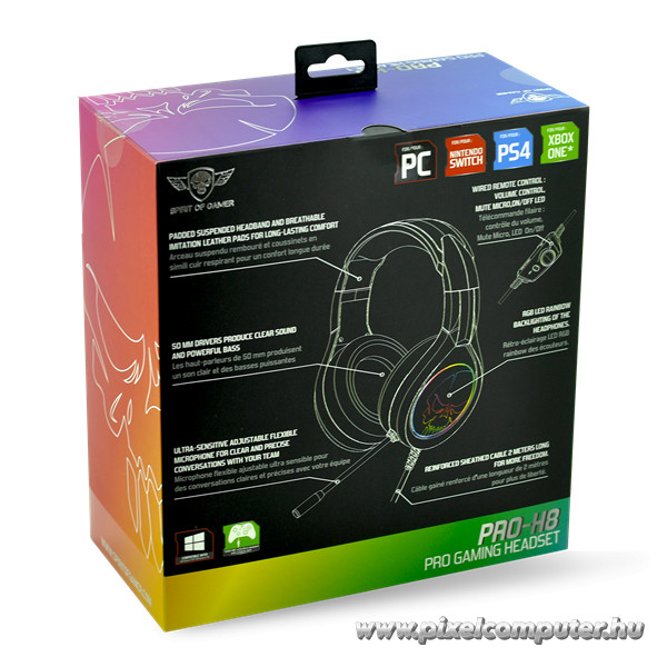 A PRO-H8 RGB Dark igazi multiplatform gamer fejhallgató, ami tökéletesen működik PC-vel, játékkonzolokkal (PlayStation, Xbox) és mobil eszközökkel is. A 3.5 mm-es jack csatlakozó univerzális kompatibilitást biztosít, így bárhol és bármikor élvezheted a prémium hangzást. A Pixelcomputer szakértői szerint ez a modell ideális választás azoknak, akik egy megbízható, jól szóló és látványos gamer headsetet keresnek, elérhető áron.
