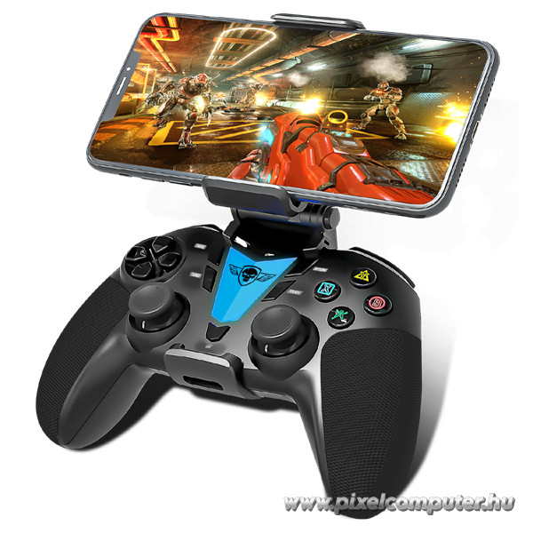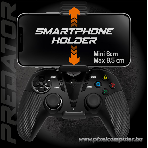 A beépített telefontartó lehetővé teszi, hogy a mobilodból pillanatok alatt kézikonzolt varázsolj. A max. 8,5 cm szélességű tartó stabilan fogja a készüléket, így nem kell aggódnod, hogy elmozdul játék közben. A Pixelcomputer ügyfelei különösen dicsérik, hogy a kontroller nemcsak PC-n, hanem Androidon és iOS-en is tökéletesen működik – a gyors párosítás és az azonnali felismerés miatt a beüzemelés mindössze néhány másodperc.