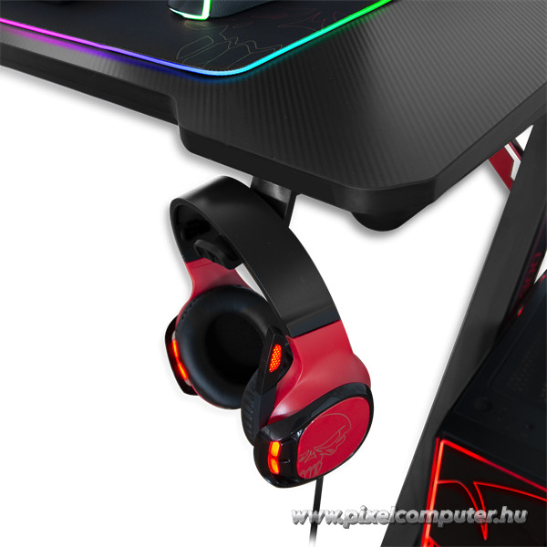 A Spirit of Gamer Headquarter 300 gamer asztal egy stílusos és funkcionális játékasztal, amely minden gamer számára tökéletes választás. A 120x60 cm-es felület bőven elegendő helyet biztosít a monitorodnak, a billentyűzetednek, az egerednek és egyéb gamer felszerelésednek. Az asztal masszív MDF lapból készült, karbon hatású bevonattal, ami stílusos és modern megjelenést kölcsönöz neki. Az erős fém lábak pedig stabilitást és tartósságot biztosítanak. Az RGB LED világítás pedig látványos és hangulatos atmoszférát teremt a szobádban. A fejhallgató- és pohártartó pedig praktikus kiegészítők, amelyek kényelmesebbé teszik a játékot. A Spirit of Gamer Headquarter 300 gamer asztallal a játékélmény még élvezetesebb lesz!