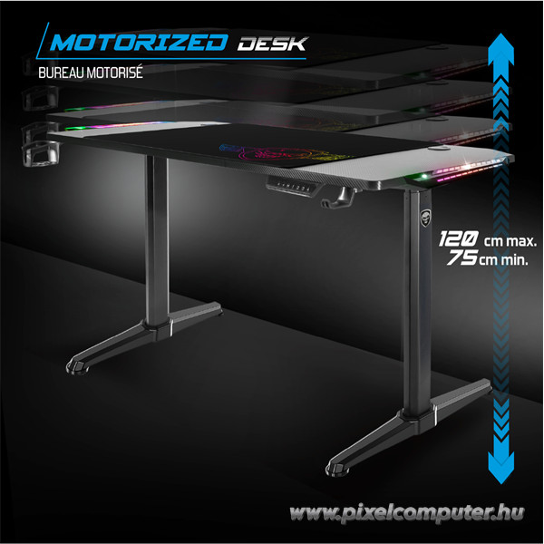 A Pixelcomputer kínálatában ez az asztal kiemelkedő stabilitást és vizuális élményt nyújt. Vásárlóink elismeréssel beszélnek az asztal tágas kialakításáról és a hangulatos világításáról, mely a játékteret egyedi atmoszférává varázsolja. Ez több, mint egy asztal – ez egy funkcionális gamer központ.