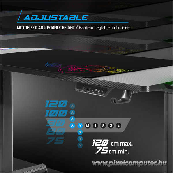 A testreszabható RGB LED világítás nemcsak stílust ad, hanem segíti a fókuszált játékélményt is. Akár FPS, akár RPG játékban vagy otthon, ez az asztal úgy támogatja a játékot, ahogy csak kevés bútor képes.