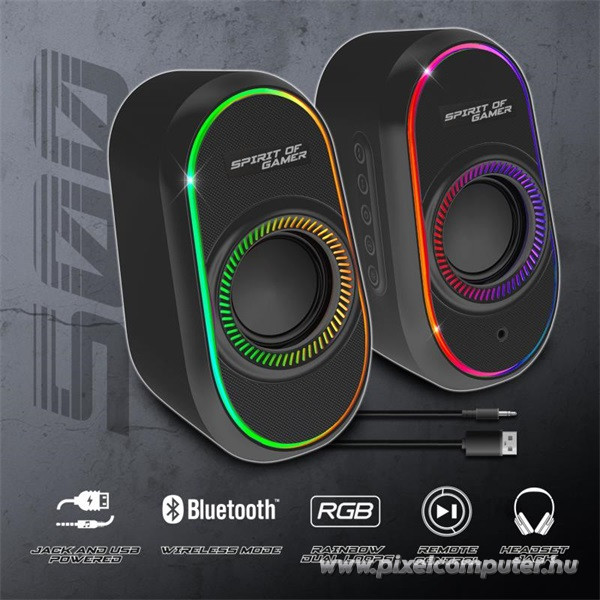 A Spirit of Gamer Fanatic 500 2.0 hangszóró kiváló hangminőséget nyújt, kompakt és stílusos formában. A Bluetooth kompatibilitás lehetővé teszi, hogy vezeték nélkül csatlakoztasd az eszközeidet, így könnyedén hallgathatod kedvenc zenéidet, akár a telefonodról vagy táblagépedről. A 3,5 mm-es jack csatlakozó segítségével egyszerűen csatlakoztathatod a hangszórót számítógépedhez, laptopodhoz vagy más audioeszközhöz, így sokoldalúan használható bármilyen környezetben.