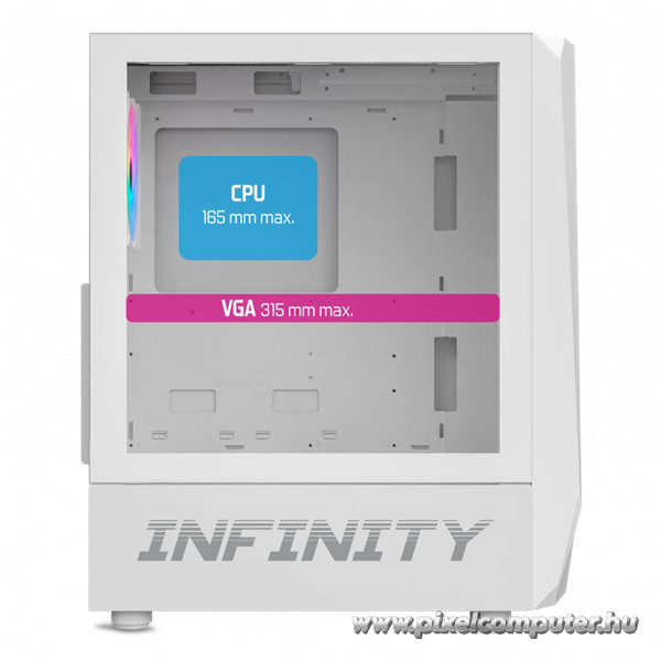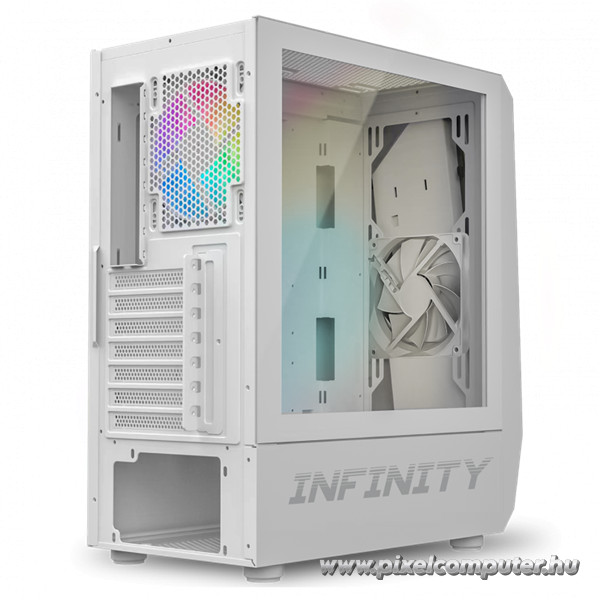 A fehér-fekete színkombináció modern, letisztult megjelenést kölcsönöz, míg az edzett üveg oldallap lehetővé teszi, hogy megmutasd a géped belső szépségét. Ez a ház nemcsak a teljesítményről szól, hanem a stílusról és egyediségről is. A Pixelcomputer kínálatában elérhető INFINITY White azok számára készült, akik nemcsak játszani akarnak, hanem egy valódi látványos mesterművet építeni.