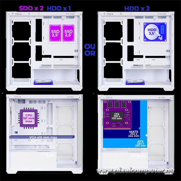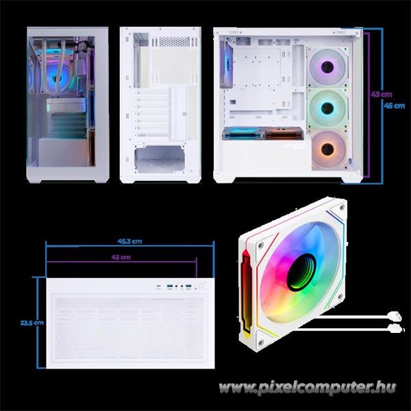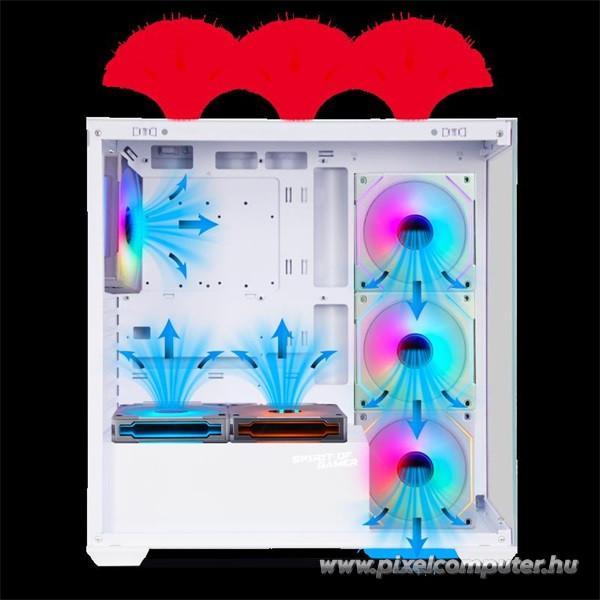 A Spirit of Gamer SPARK Arctic ideális választás mindazoknak, akiknek fontos a kiváló szellőzés, a stílusos megjelenés és a tágas belső elrendezés. Gamer PC-khez, nagy teljesítményű konfigurációkhoz és igényes munkaállomásokhoz egyaránt tökéletes választás, ahol számít az elegancia és a hatékonyság is.