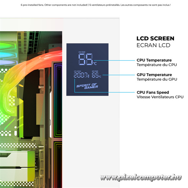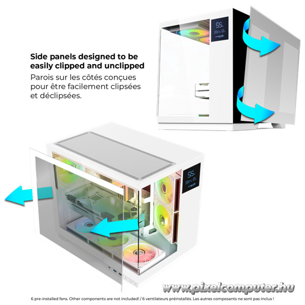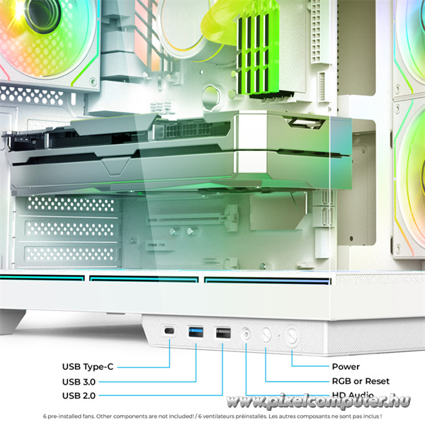 A SPIRIT OF GAMER VIPER CRX White azoknak szól, akik komolyan veszik a teljesítményt, de nem akarnak kompromisszumot kötni a látványban sem. Ideális választás gamereknek, streamereknek, kreatív szakembereknek és mindenkinek, aki szeretné, ha a gépe nemcsak működne, hanem megmutatná, mit képvisel. A fekete acélházas konstrukció és az átlátszó oldallap egyszerre elegáns és vagány, miközben a hat ventilátor dinamikus hűtést biztosít még extrém terhelés alatt is. A Pixelcomputer által forgalmazott modell azoknak való, akik hisznek abban, hogy a technika lehet stílusos, és a teljesítmény lehet látványos.