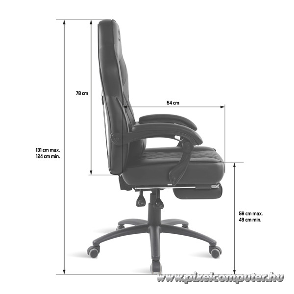 A Spirit of Gamer MUSTANG Black azoknak készült, akik a kényelmet és a teljesítményt egyszerre keresik. Az ergonomikus kialakítás tökéletesen követi a test vonalát, csökkenti a hát- és derékfájdalmat, valamint segíti a helyes testtartás fenntartását. A kihajtható lábtartó és az állítható háttámla lehetővé teszi, hogy akár teljesen hátradőlj és kipihend magad a hosszú játékmenetek után. A Pixelcomputer vásárlói különösen értékelik a szék stabilitását, vastag párnázását és azt, hogy még órák után is kényelmes marad.